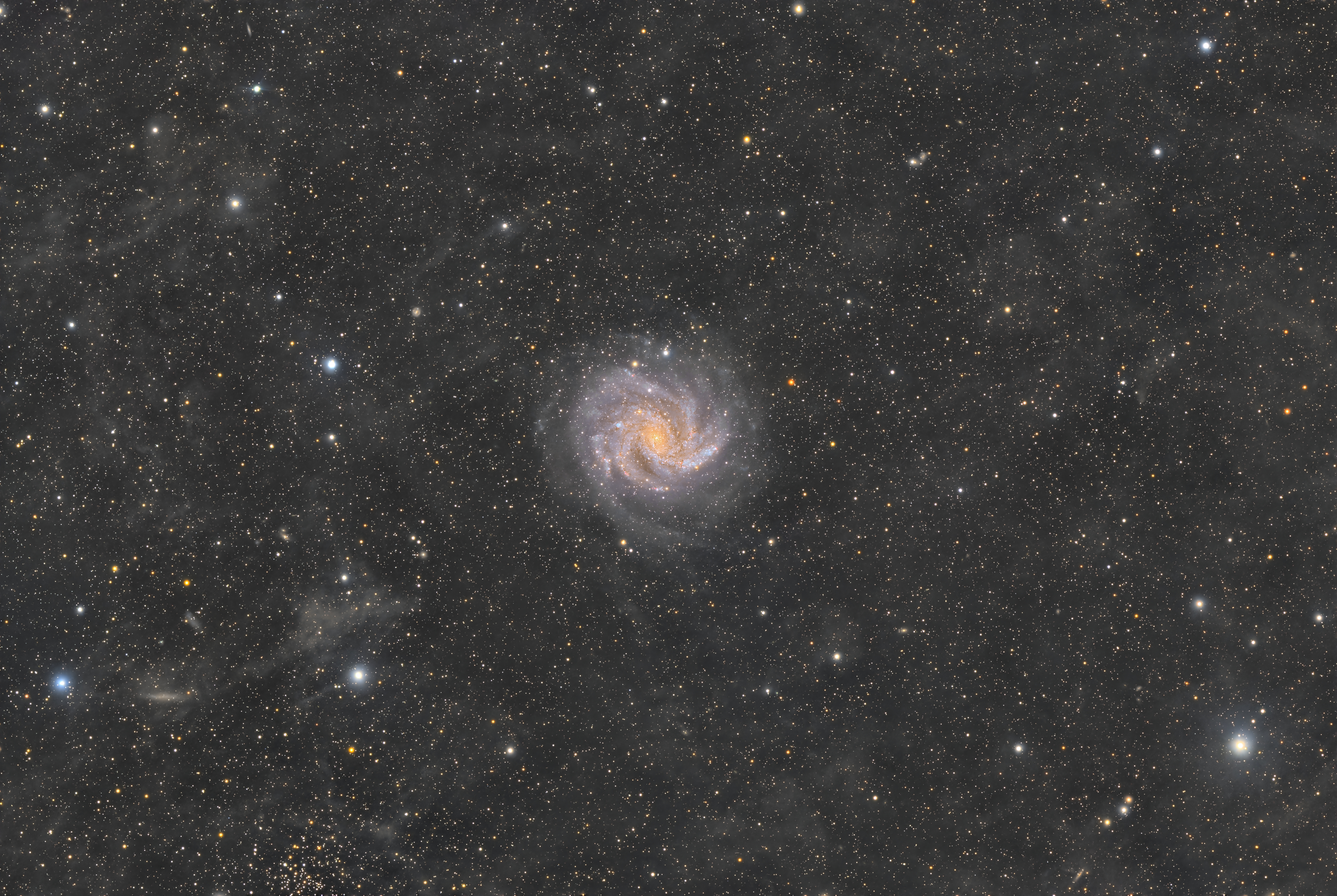 Here is a slightly different view of NGC 6946. Most versions seem to supress the background of gas and dust in our Milky Way in order to make the galaxy more visible.